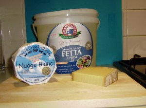 To the left is an organic soft cheese that will take some time to ripen so be patient and persevere with it is not costly and really is quite good. It called Nuage Blanc by Paris Creek Farm Adelaide. When ripe its terrific. It got a Gold medal at the Adelaide show last year. As said before I’m a sucker for Gold Medals. In the rear is a huge tub of Feta which is just like a good Feta. It only cost $17