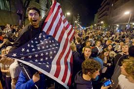 What was seen in the US was celebration not unlike that after a World series win or fans after the FA Cup Final OR Rugby Final. Nothing better than a party going on, complete with the shaking and spraying of champagne bottles over the crowd. The largest partying done at Ground Zero scene of the twin towers take down.I can completely understand people wanting to celebrate as on VE day but something didn’t feel right. It’s one thing to be happy that a criminal has been captured and dealt with.